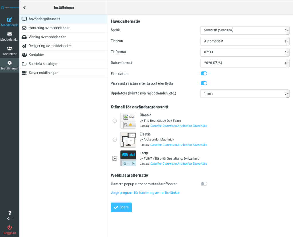 För att byta tillbaka till Larry, gå till inställningar/Användargränssnitt och välj Stilmall till Larry och tryck SPARA.